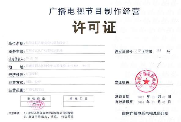 龙城之巅顺利通过《电视剧制作许可证》2011年度年检